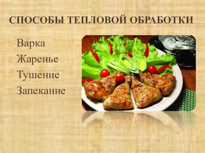 При тушении блюда приобретают особый вкус и сочность; кроме того, продукты, которые не размягчаются при жарке (старая птица), при тушении доводятся до готовности.