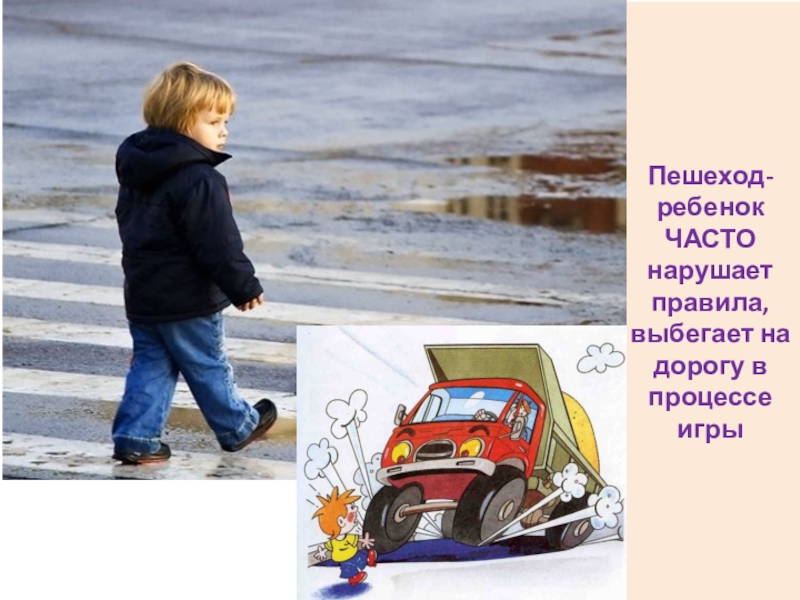 Слайд 23Пешеход-ребенок ЧАСТО нарушает правила, выбегает на дорогу в процессе игры