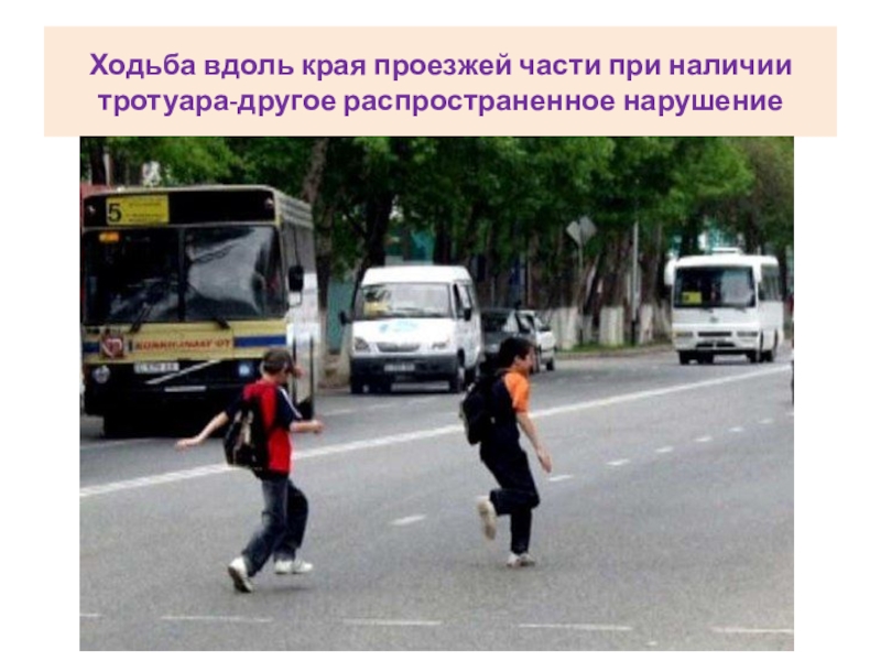 Слайд 10Ходьба вдоль края проезжей части при наличии тротуара-другое распространенное нарушение