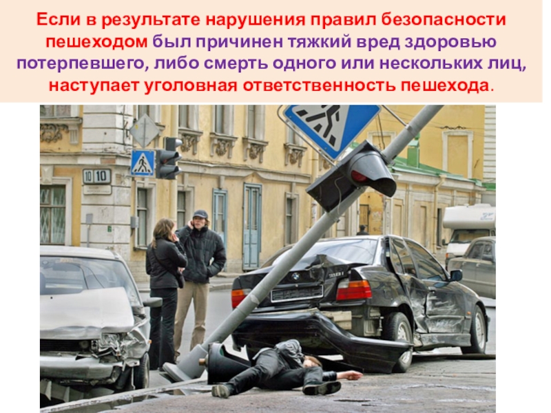 здоровью потерпевшего, либо смерть одного или нескольких лиц, наступает уголовная ответственность пешехода.