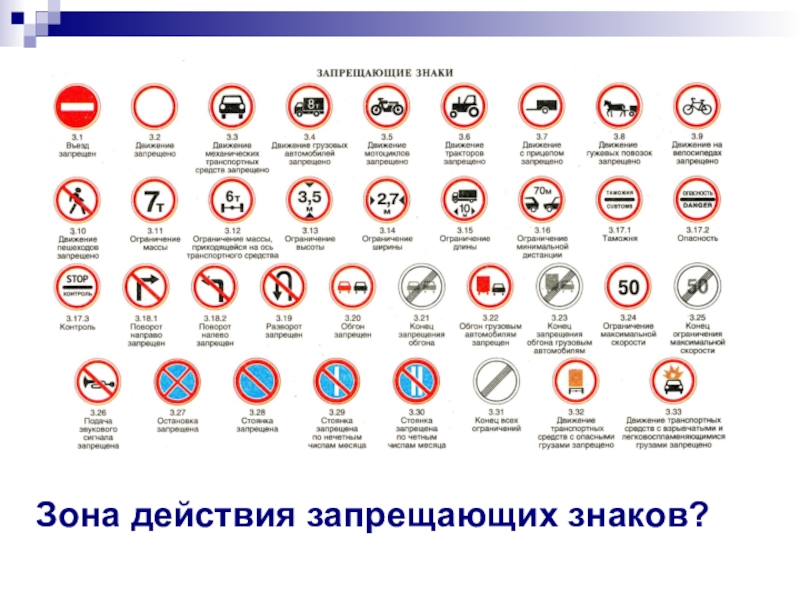 Слайд 6Зона действия запрещающих знаков?