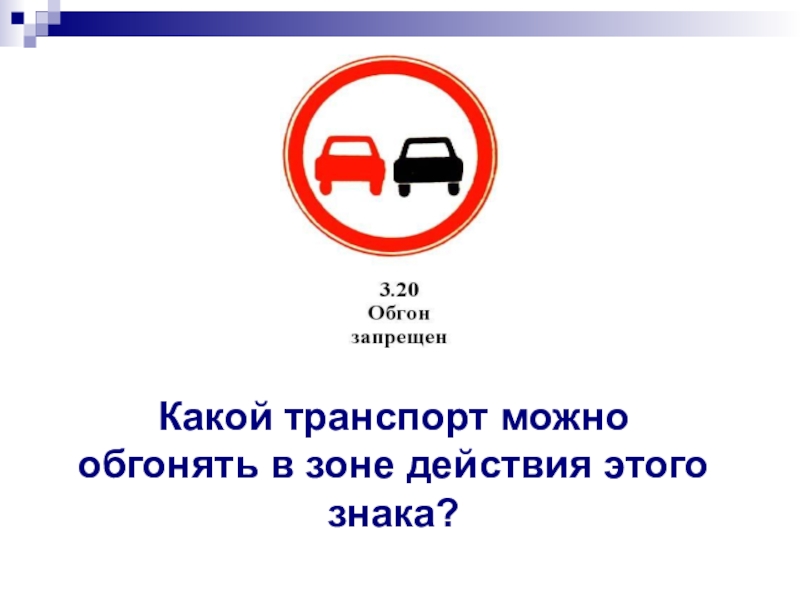Слайд 11Какой транспорт можно обгонять в зоне действия этого знака?