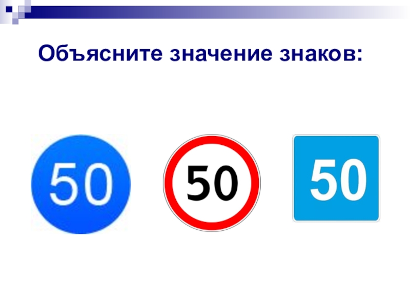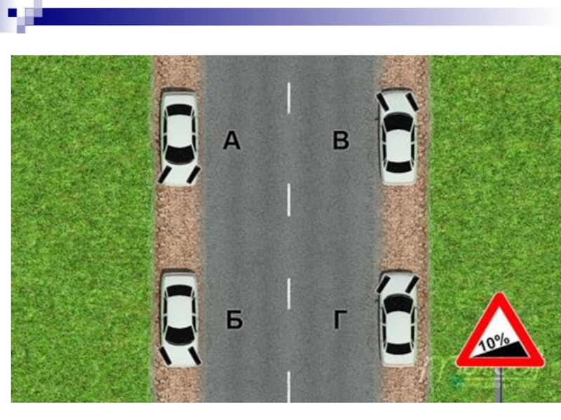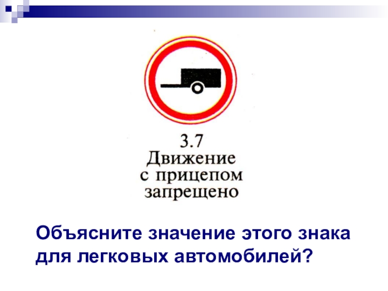 Слайд 10Объясните значение этого знака для легковых автомобилей?