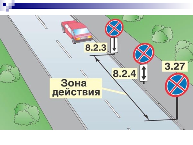 Слайд 3Зона действия знаков?