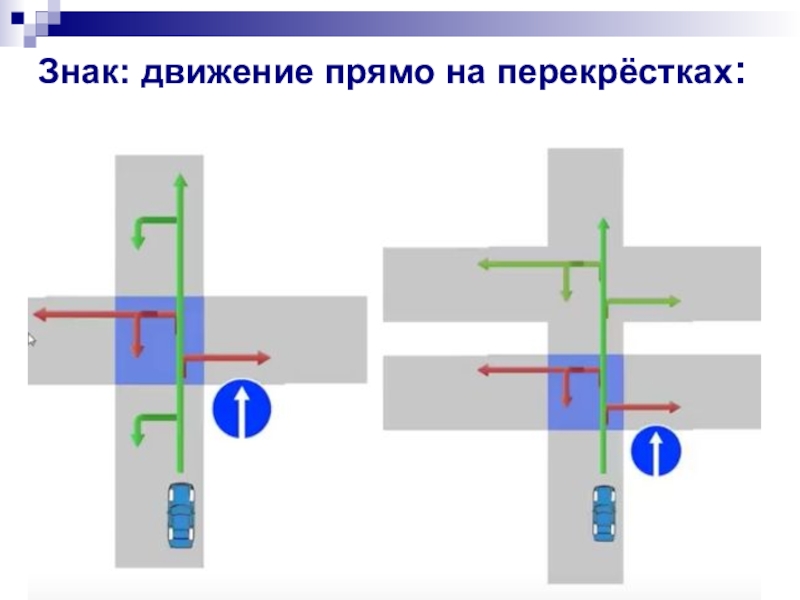 Слайд 15Знак: движение прямо на перекрёстках: