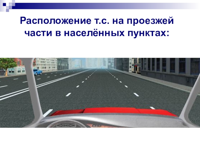 Слайд 25Расположение т.с. на проезжей части в населённых пунктах: