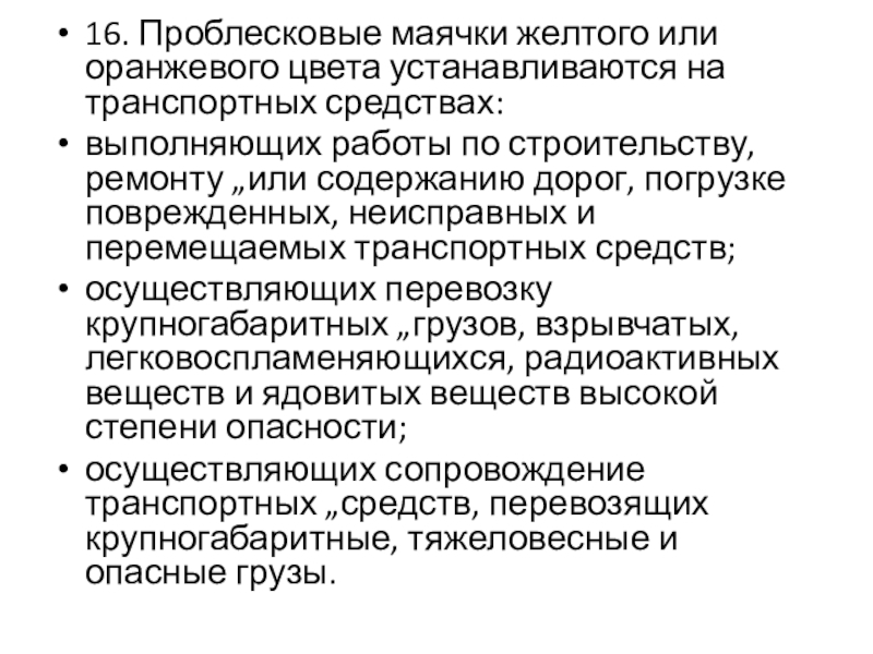 Слайд 2316. Проблесковые маячки желтого или оранжевого цвета устанавливаются на транспортных средствах: