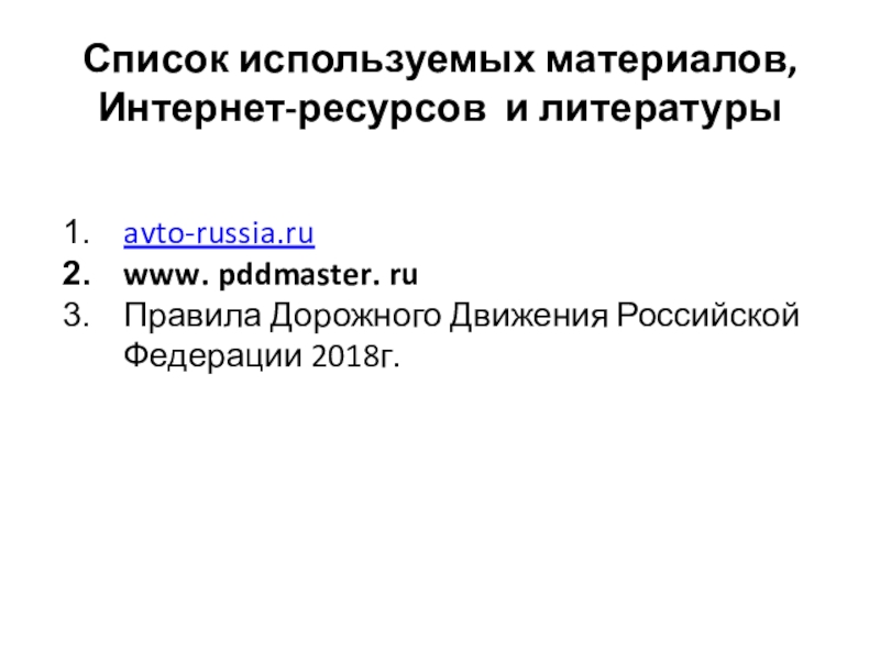Слайд 27Список используемых материалов, Интернет-ресурсов и литературы