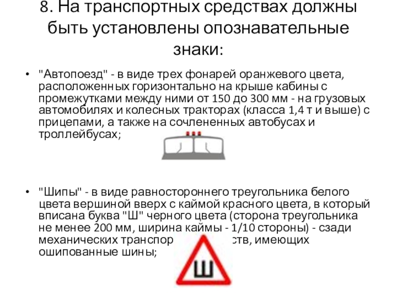 Слайд 78. На транспортных средствах должны быть установлены опознавательные знаки: