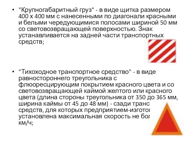 Слайд 11"Крупногабаритный груз" - в виде щитка размером 400 х 400 мм