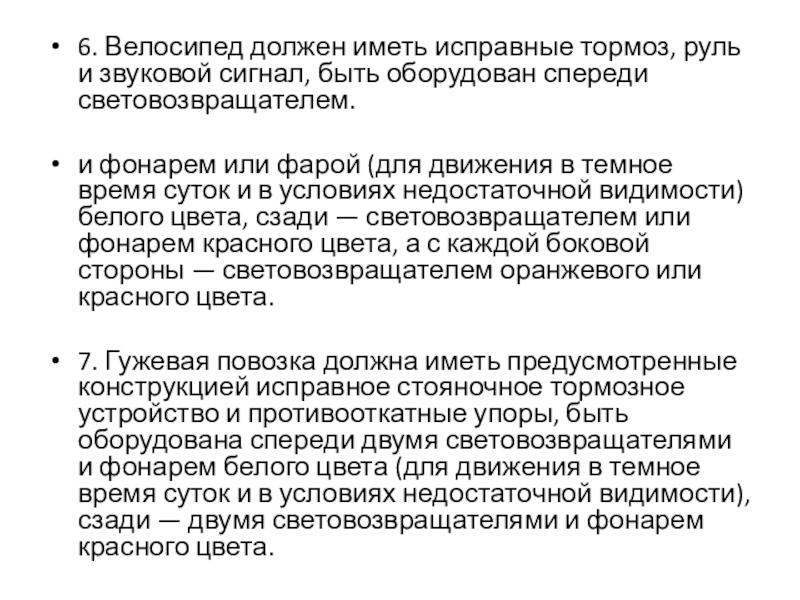 Слайд 66. Велосипед должен иметь исправные тормоз, руль и звуковой сигнал, быть