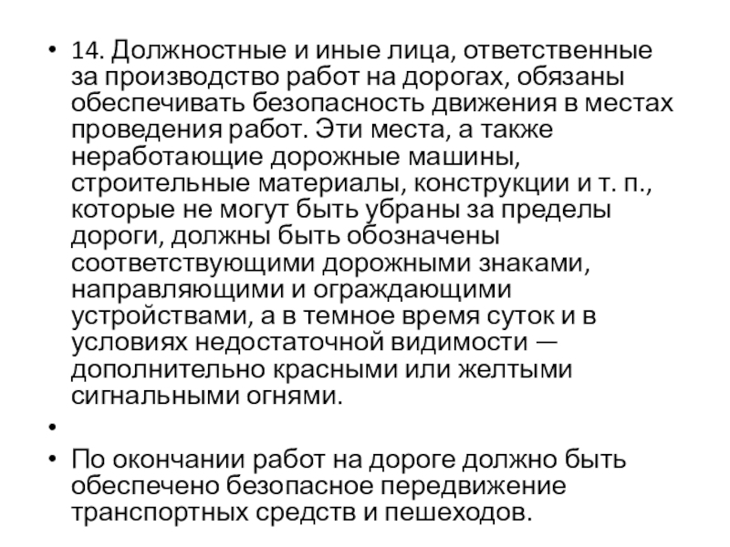 Слайд 2114. Должностные и иные лица, ответственные за производство работ на дорогах,
