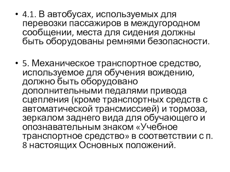 Слайд 54.1. В автобусах, используемых для перевозки пассажиров в междугородном сообщении, места