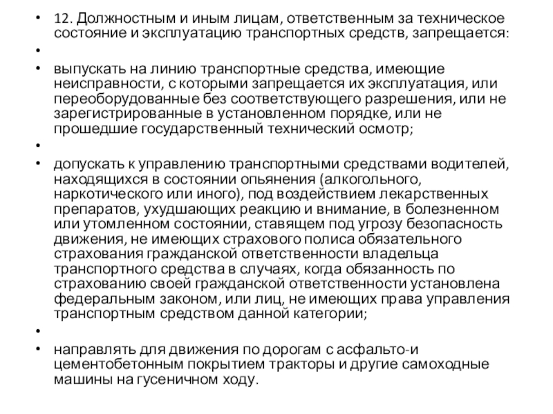 Слайд 1912. Должностным и иным лицам, ответственным за техническое состояние и эксплуатацию