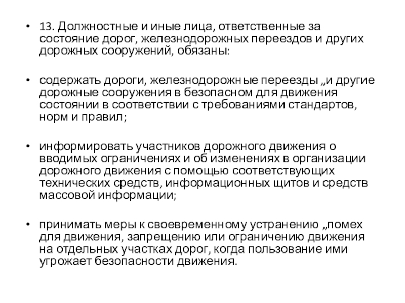 Слайд 2013. Должностные и иные лица, ответственные за состояние дорог, железнодорожных переездов