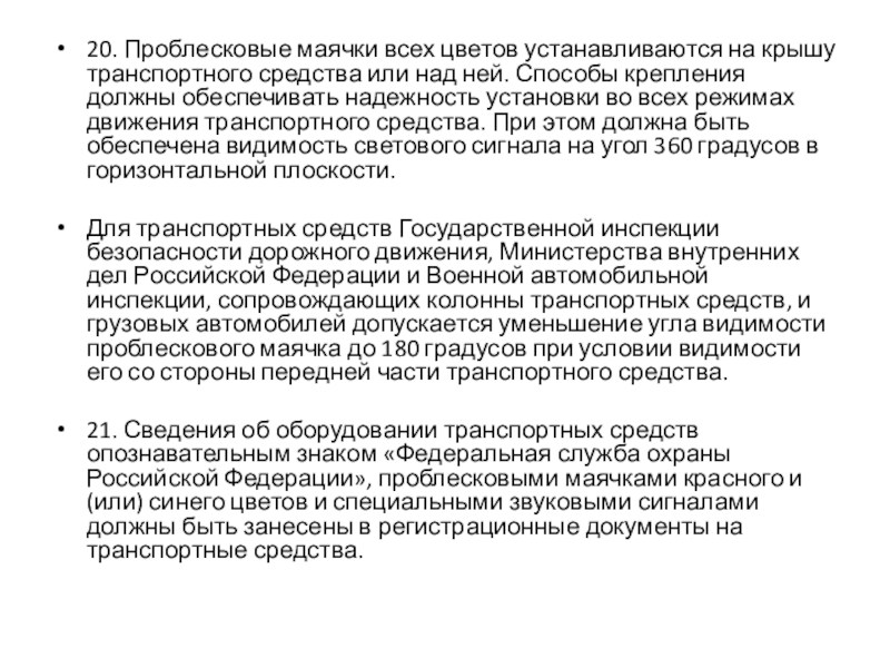 Слайд 2620. Проблесковые маячки всех цветов устанавливаются на крышу транспортного средства или