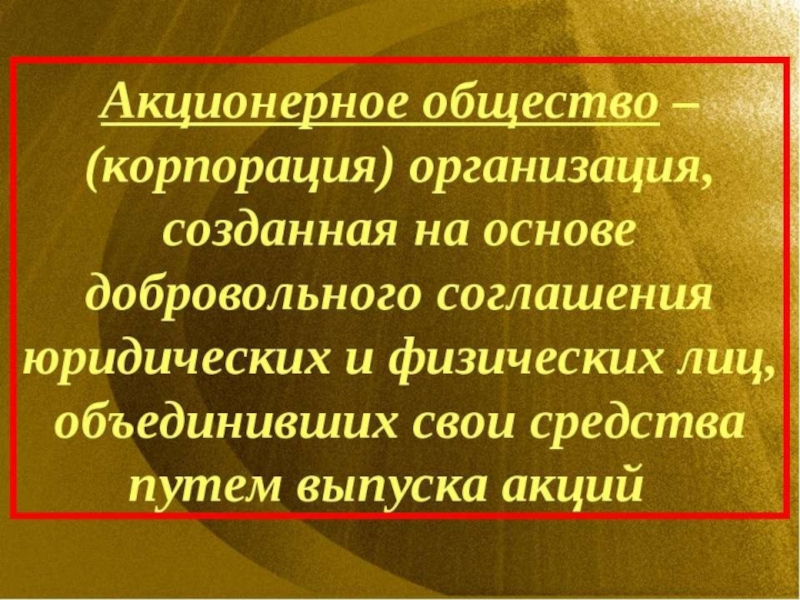 Слайд 23Акционерное общество (АО) – это форма деятельности хозяйственной (коммерческой) организации, при которой