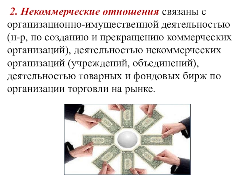 Слайд 6 2. Некоммерческие отношения связаны с организационно-имущественной деятельностью (н-р, по созданию