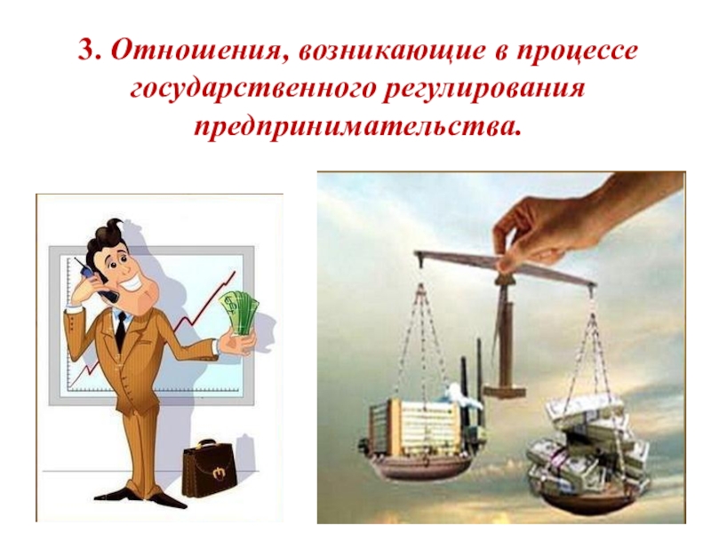 Слайд 73. Отношения, возникающие в процессе государственного регулирования предпринимательства.