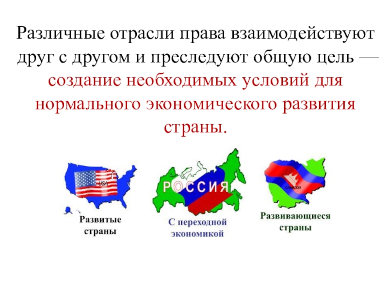 Слайд 15Различные отрасли права взаимодействуют друг с другом и преследуют общую цель