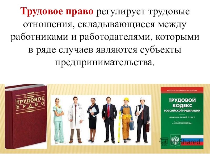 Слайд 14Трудовое право регулирует трудовые отношения, складывающиеся между работниками и работодателями, которыми