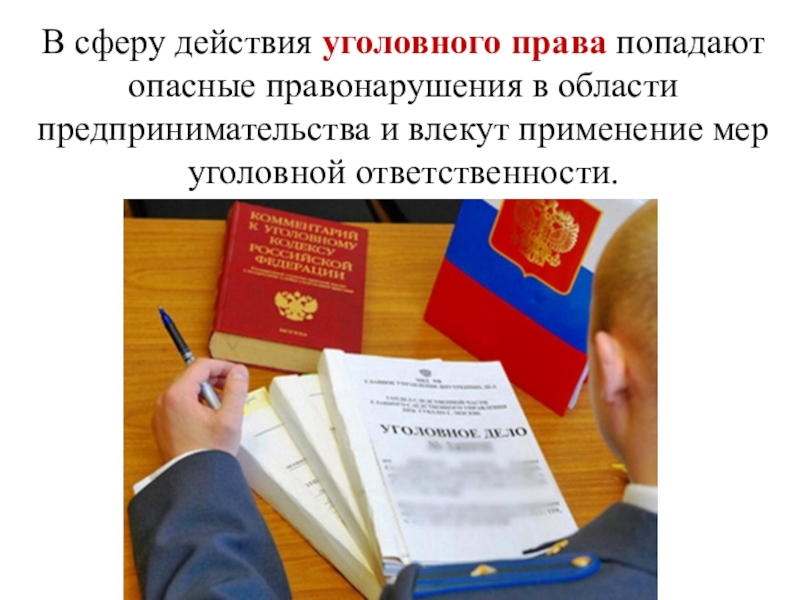 Слайд 12В сферу действия уголовного права попадают опасные правонарушения в области предпринимательства