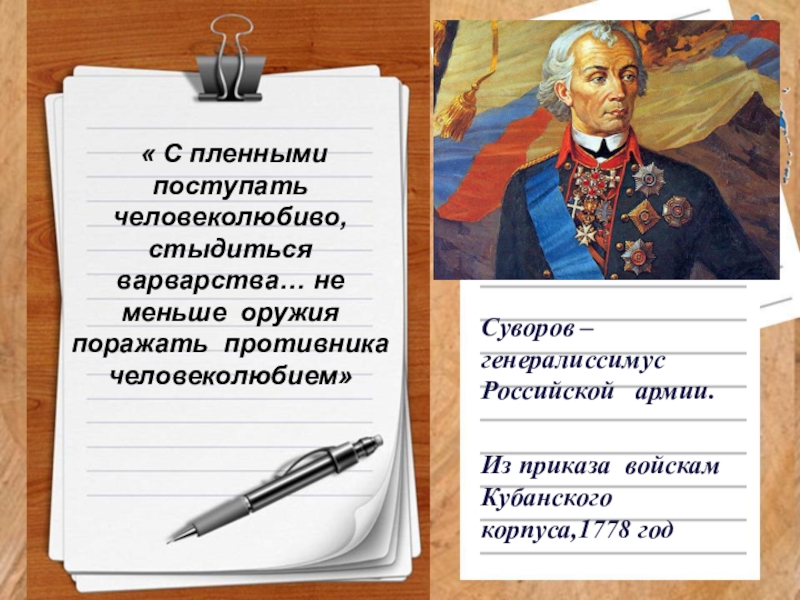 Суворов –генералиссимус Российской армии.