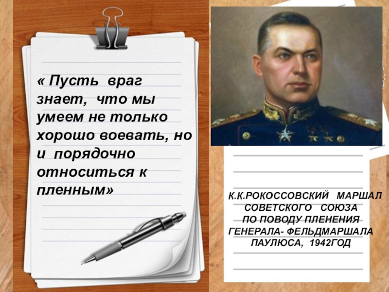 « Пусть враг знает, что мы умеем не только хорошо воевать, но и порядочно относиться к пленным»