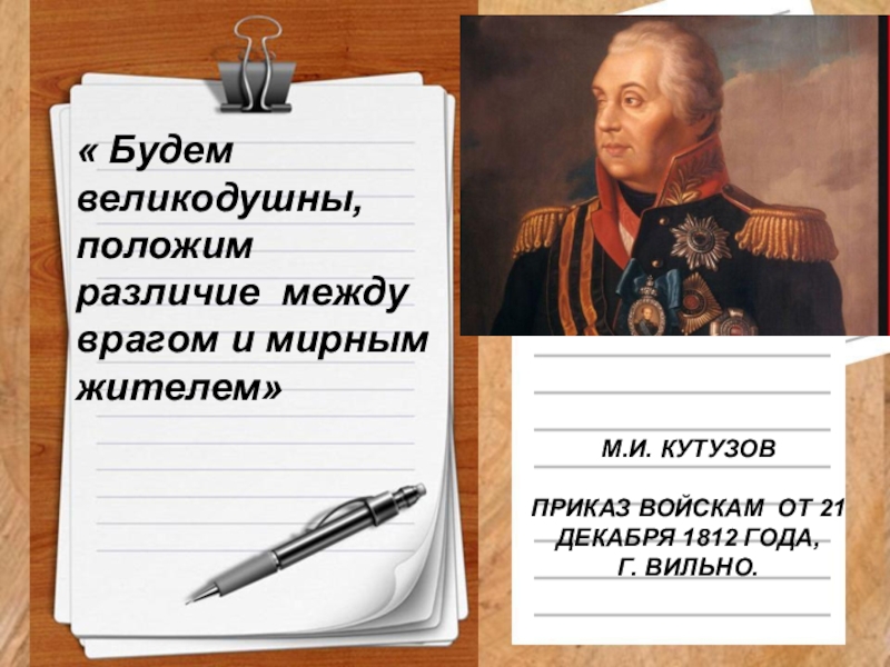 « Будем великодушны, положим различие между врагом и мирным жителем»