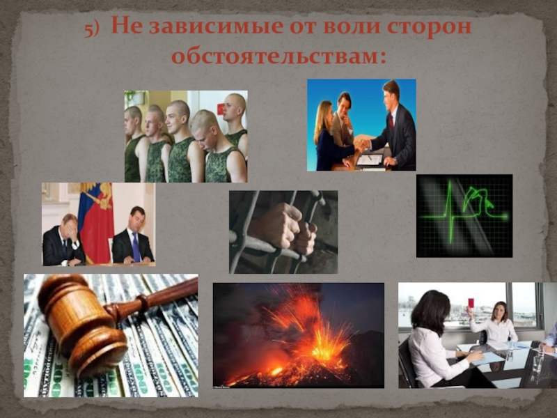 Слайд 145) Не зависимые от воли сторон обстоятельствам: