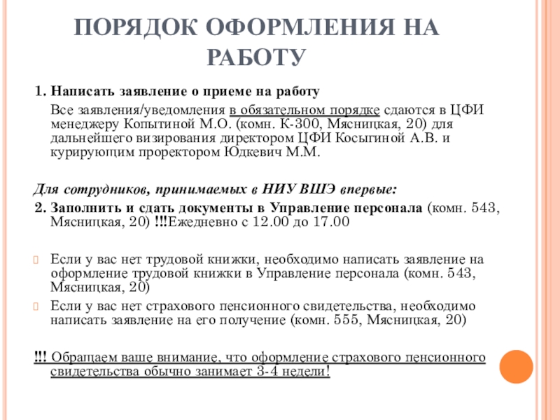 Слайд 15ПОРЯДОК ОФОРМЛЕНИЯ НА РАБОТУ