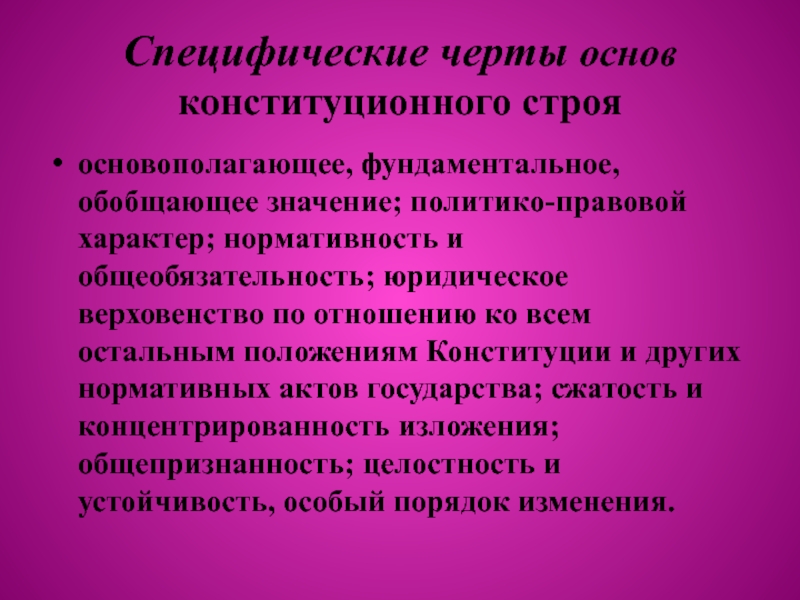 Слайд 8Специфические черты основ конституционного строя