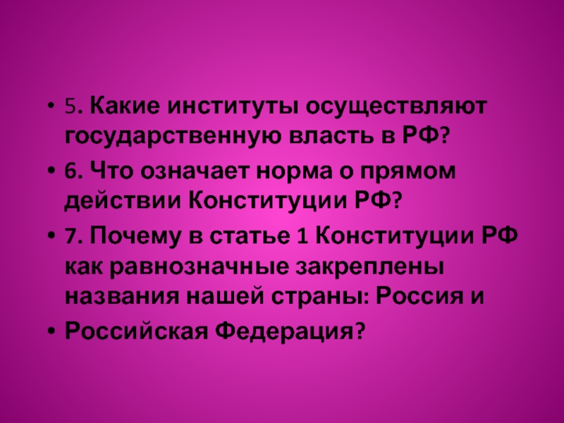 Слайд 285. Какие институты осуществляют государственную власть в РФ?