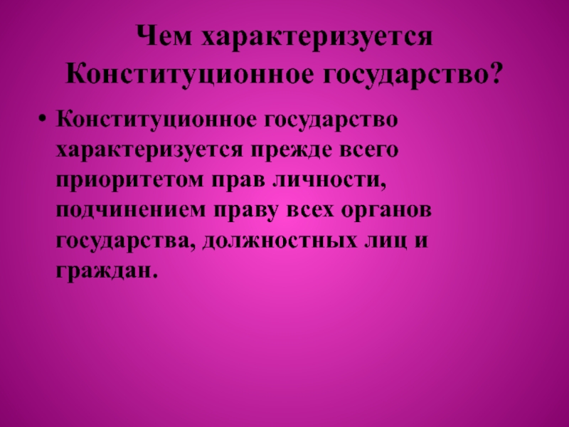Слайд 5Чем характеризуется Конституционное государство?