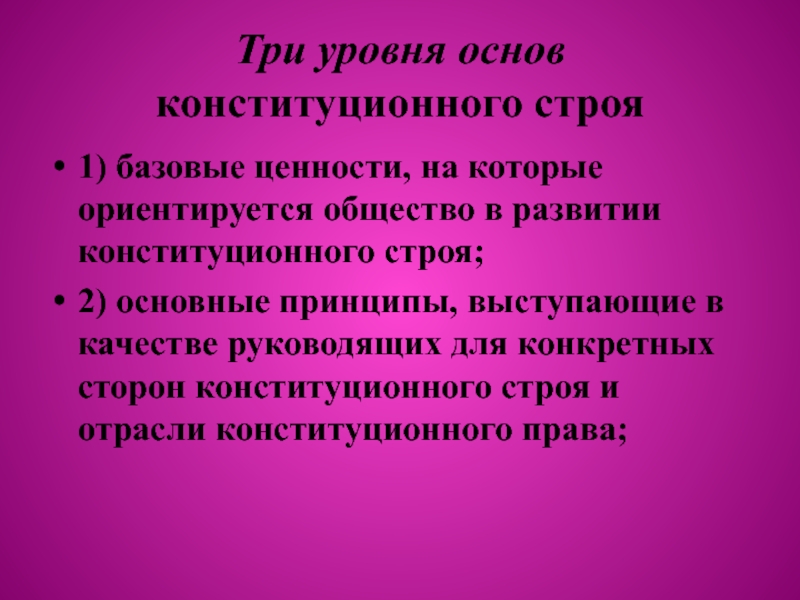Слайд 6Три уровня основ конституционного строя