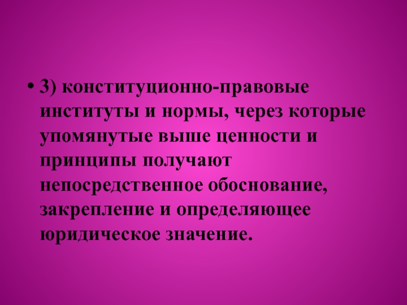Слайд 73) конституционно-правовые институты и нормы, через которые упомянутые выше ценности и
