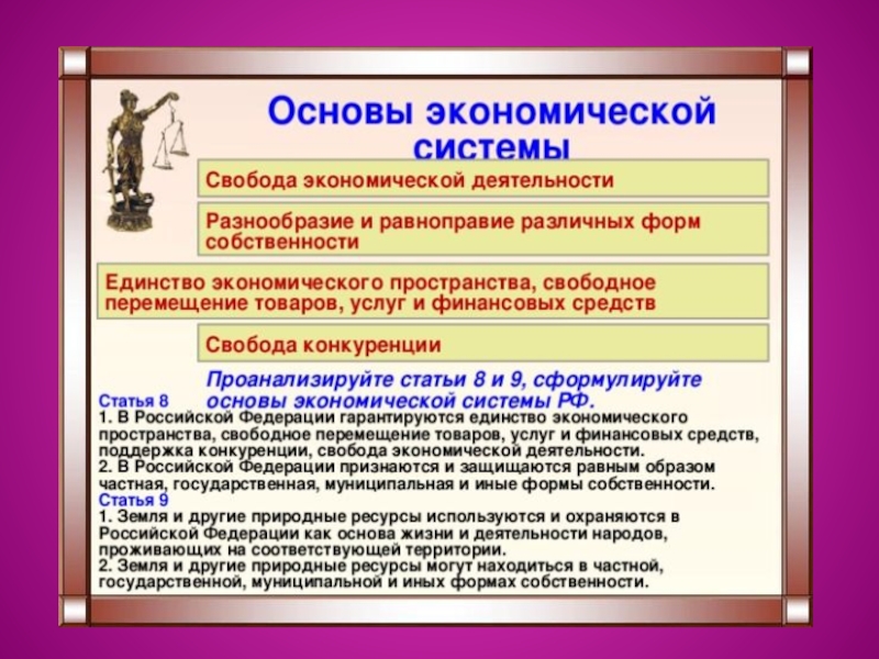 экономической деятельности (ст. 8, 9 Конституции РФ).