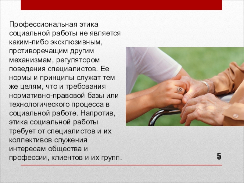 Профессиональная этика социальной работы не является каким-либо эксклюзивным, противоречащим другим механизмам,