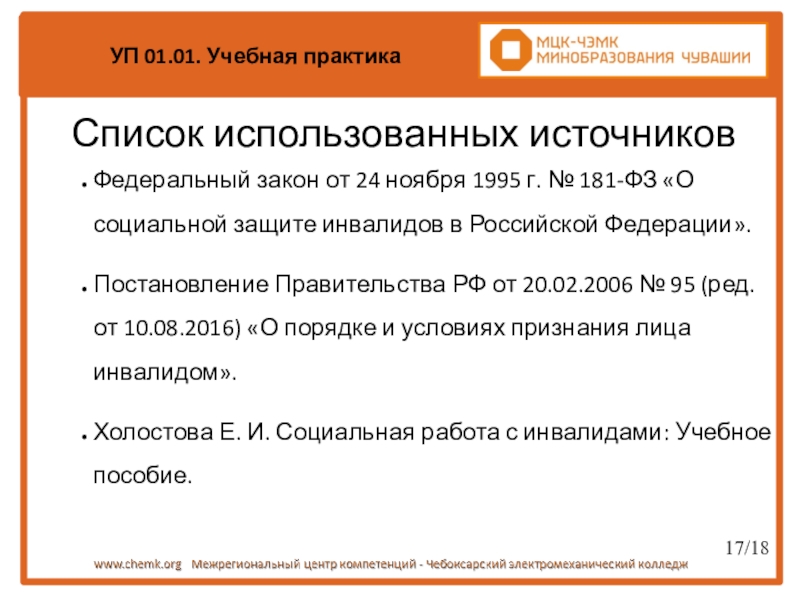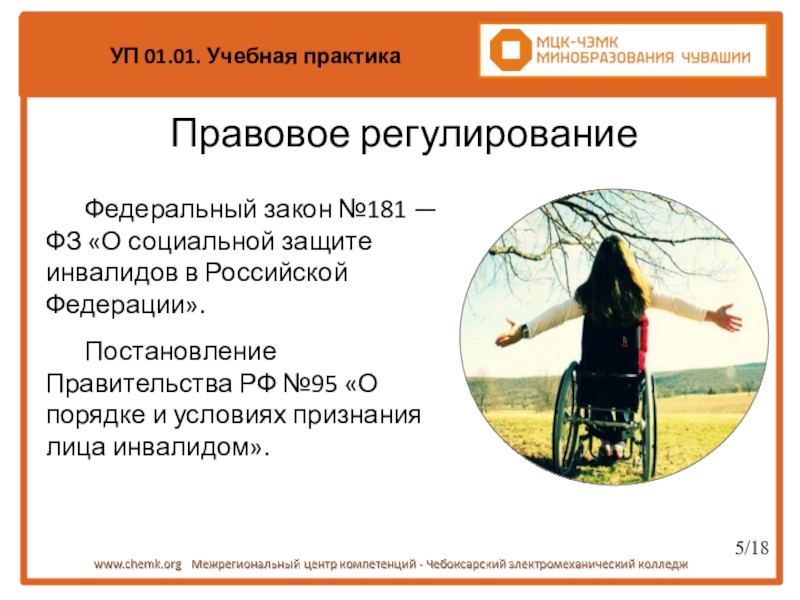 Федеральный закон от 24 ноября 1995 г. № 181-ФЗ «О социальной защите инвалидов в Российской Федерации».