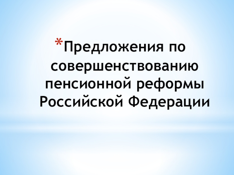 Слайд 18Предложения по совершенствованию пенсионной реформы Российской Федерации