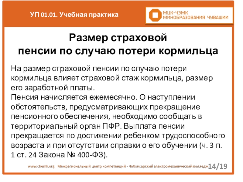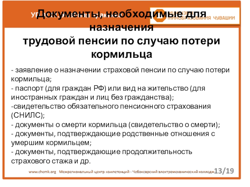 - рассмотреть условия назначения страховой пенсии по случаю потери кормильца согласно действующему