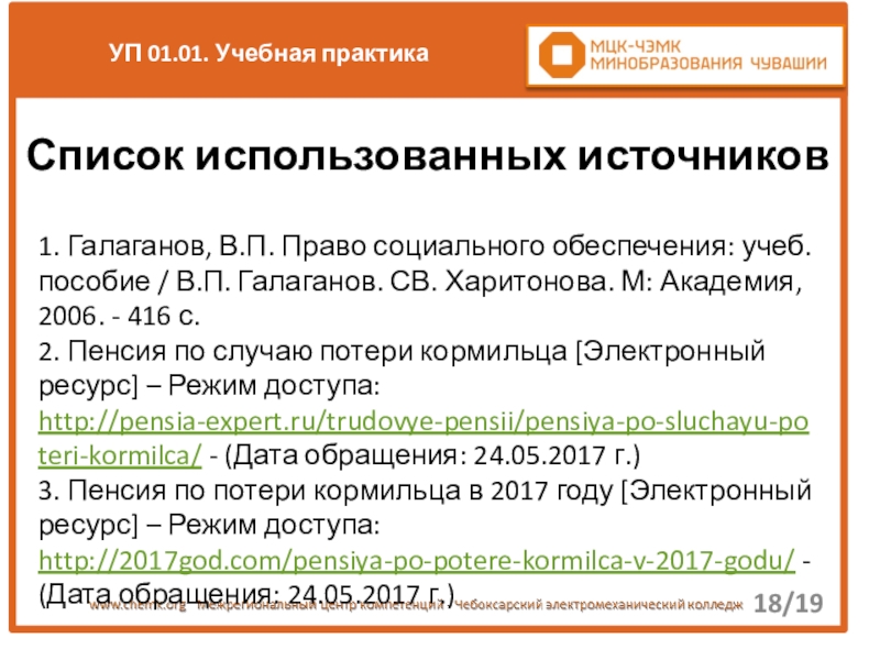 2. Пенсия по случаю потери кормильца [Электронный ресурс] – Режим доступа: http://pensia-expert.ru/trudovye-pensii/pensiya-po-sluchayu-poteri-kormilca/ - (Дата обращения: 24.05.2017 г.)