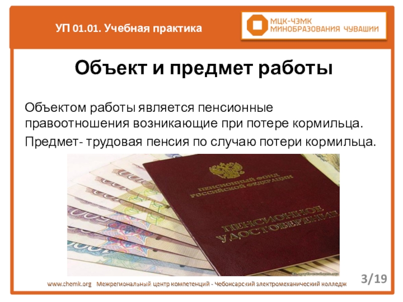 Объектом работы является пенсионные правоотношения возникающие при потере кормильца.