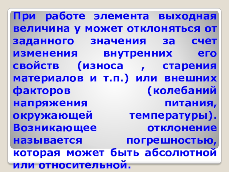 Слайд 3При работе элемента выходная величина у может отклоняться от заданного значения