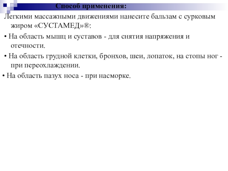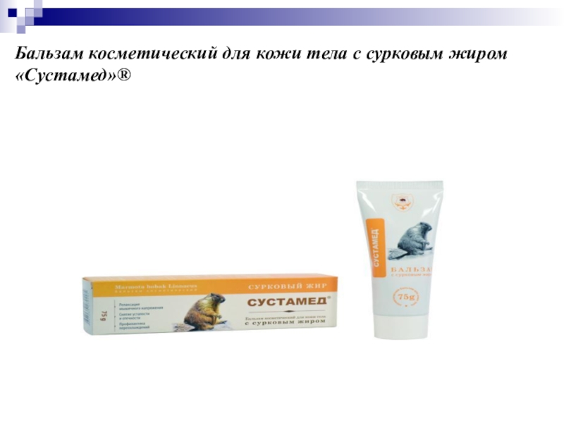 Слайд 29Бальзам косметический для кожи тела с сурковым жиром «Сустамед»®