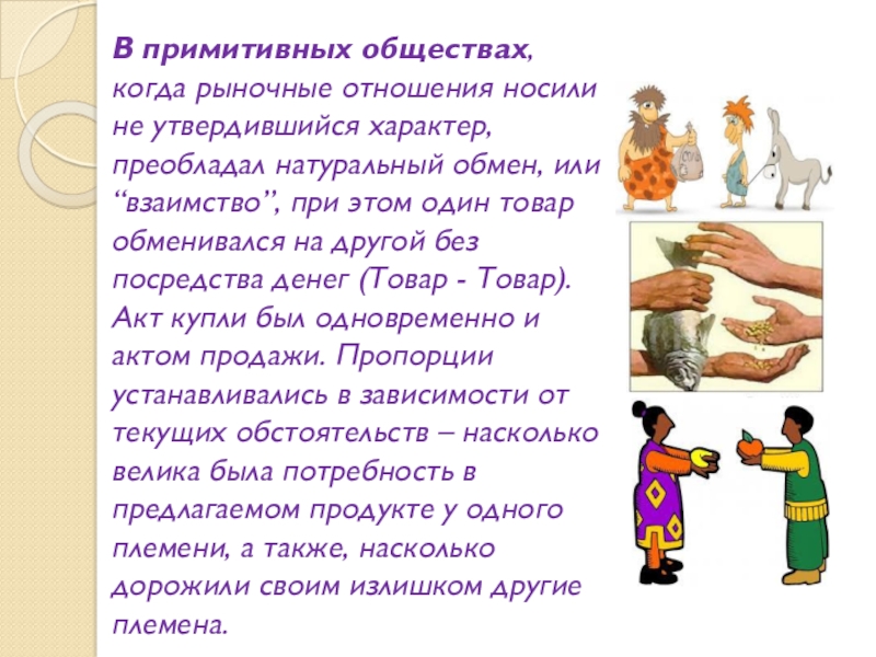 Слайд 3В примитивных обществах, когда рыночные отношения носили не утвердившийся характер, преобладал