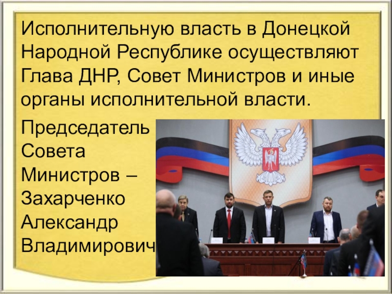 Председатель Совета Министров – Захарченко Александр Владимирович.