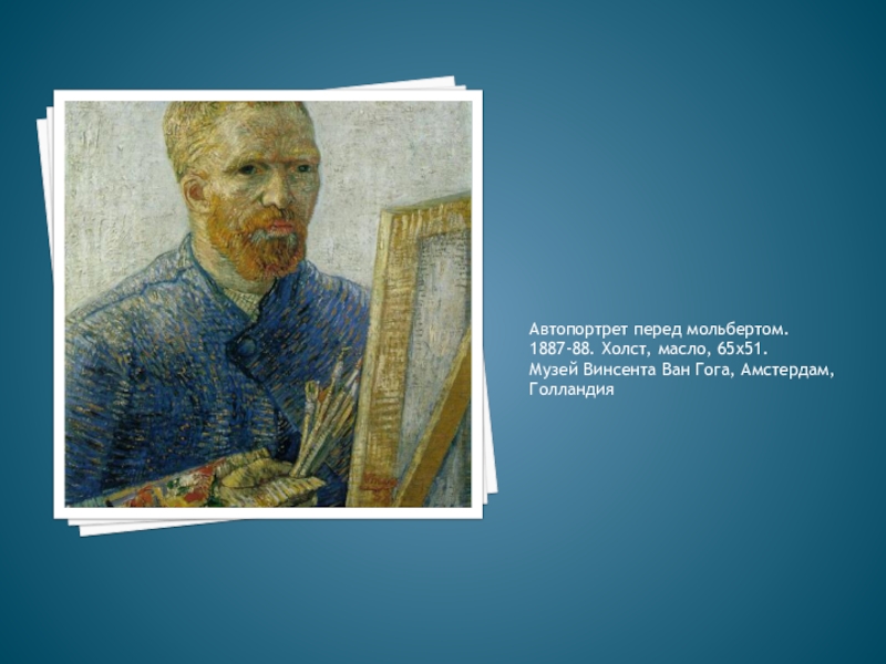 Слайд 14Автопортрет перед мольбертом. 1887-88. Холст, масло, 65х51.