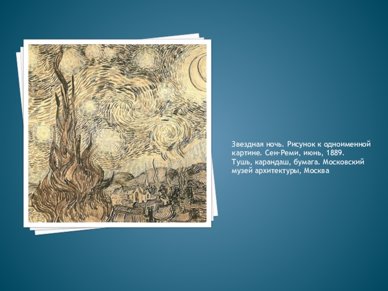 Слайд 17Звездная ночь. Рисунок к одноименной картине. Сен-Реми, июнь, 1889.