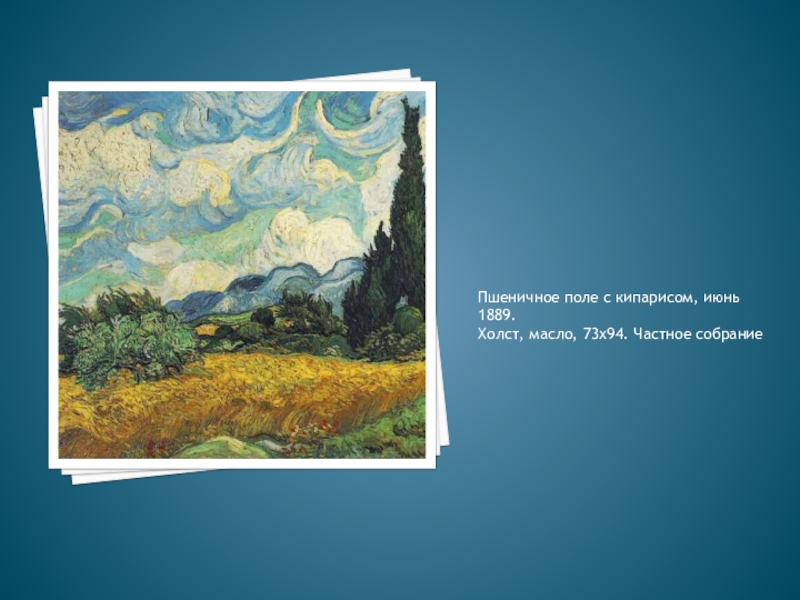 Слайд 4Пшеничное поле с кипарисом, июнь 1889.